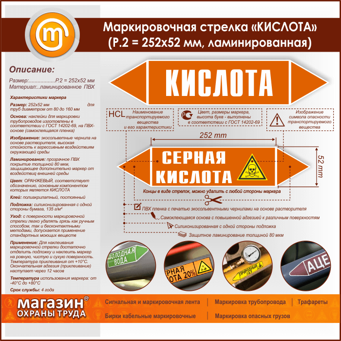 Маркировочная стрелка «КИСЛОТА» (P.2 = 252х52 мм, самоклеящаяся плёнка с ламинированием) в Новокузнецке купить