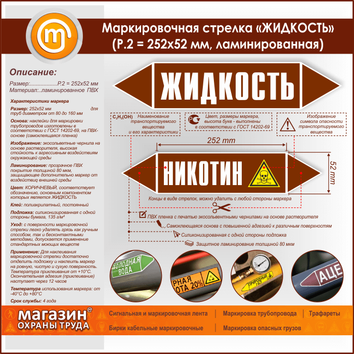 Маркировочная стрелка «ЖИДКОСТЬ» (P.2 = 252х52 мм, самоклеящаяся плёнка с ламинированием) в Новокузнецке купить