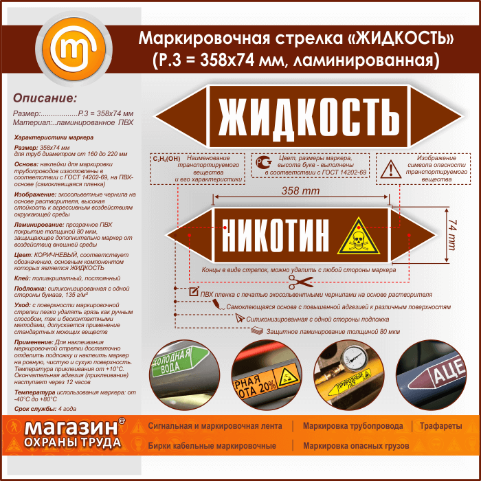 Маркировочная стрелка «ЖИДКОСТЬ» (P.3 = 358х74 мм, самоклеящаяся плёнка с ламинированием) в Новокузнецке купить