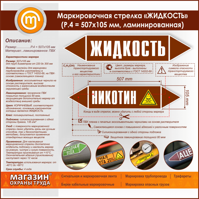 Маркировочная стрелка «ЖИДКОСТЬ»(P.4 = 507х105 мм, самоклеящаяся плёнка с ламинированием) в Новокузнецке купить