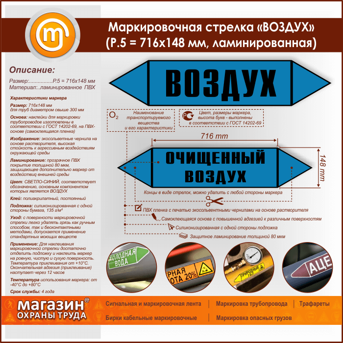 Маркировочная стрелка «ВОЗДУХ» (P.5 = 716х148 мм, самоклеящаяся плёнка с ламинированием) в Новокузнецке купить