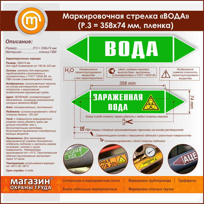 Маркировочная стрелка «ВОДА» (P.3 = 358х74 мм, самоклеящаяся плёнка) в Новокузнецке купить