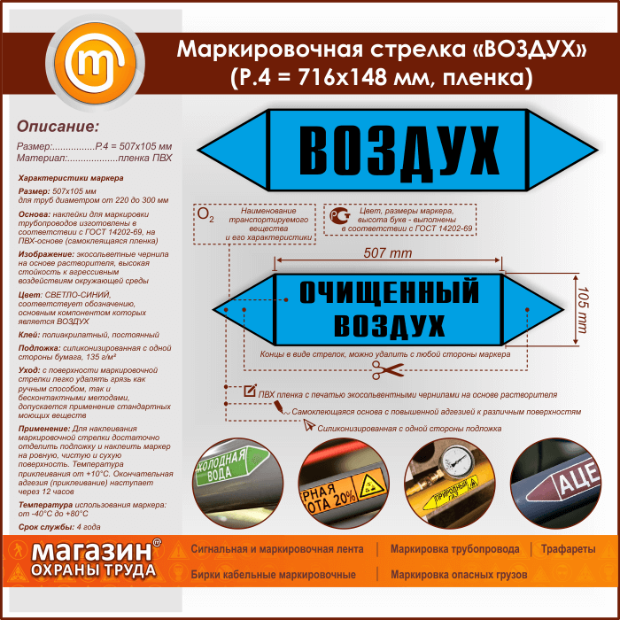 Маркировочная стрелка «ВОЗДУХ» (P.4 = 507х105 мм, самоклеящаяся плёнка) в Новокузнецке купить