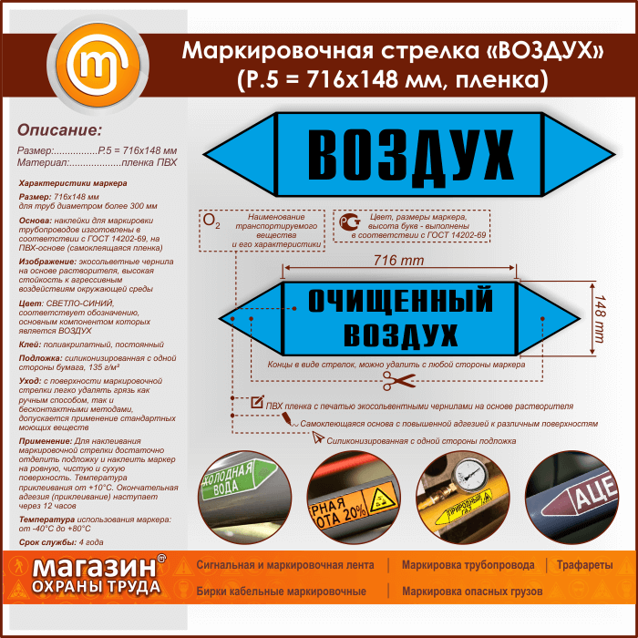 Маркировочная стрелка «ВОЗДУХ» (P.5 = 716х148 мм, самоклеящаяся плёнка) в Новокузнецке купить
