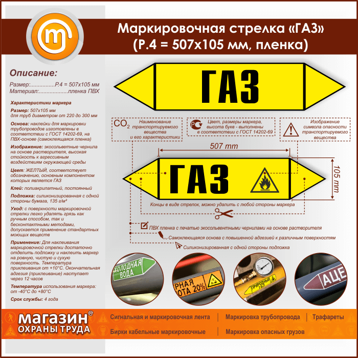 Маркировочная стрелка «ГАЗ» (P.4 = 507х105 мм, самоклеящаяся плёнка) в Новокузнецке купить