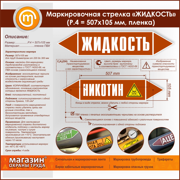 Маркировочная стрелка «ЖИДКОСТЬ»(P.4 = 507х105 мм, самоклеящаяся плёнка) в Новокузнецке купить