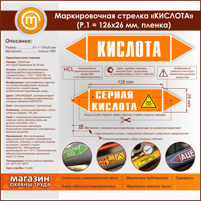 Маркировочная стрелка «КИСЛОТА» (Р.1 = 126х26 мм, самоклеящаяся плёнка) в Новокузнецке купить