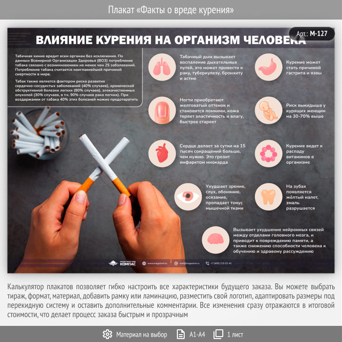 Плакат «Факты о вреде курения» (М-127, 1 лист) в Новокузнецке купить