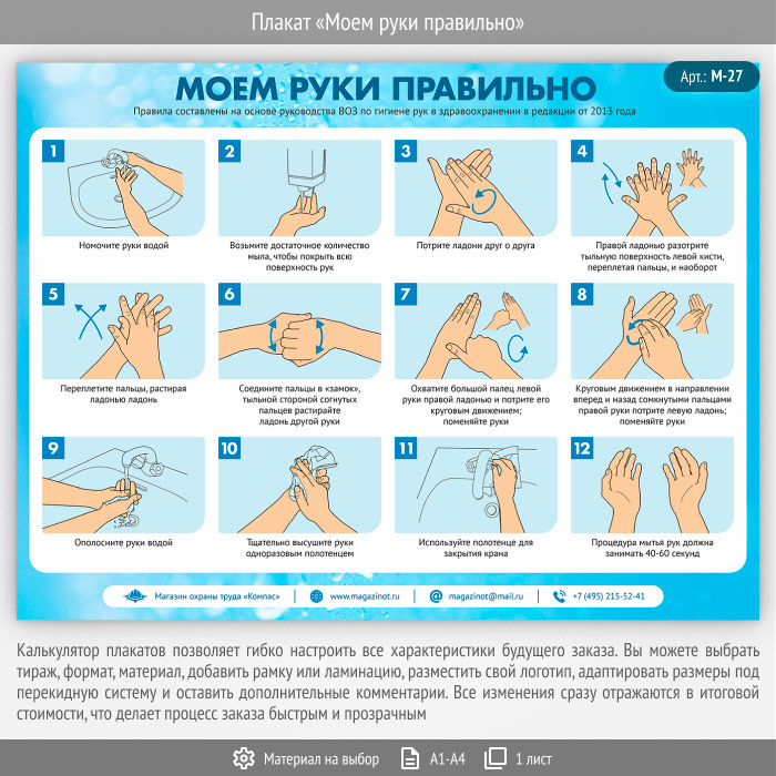 Плакат «Моем руки правильно» (М-27, 1 лист) в Новокузнецке купить