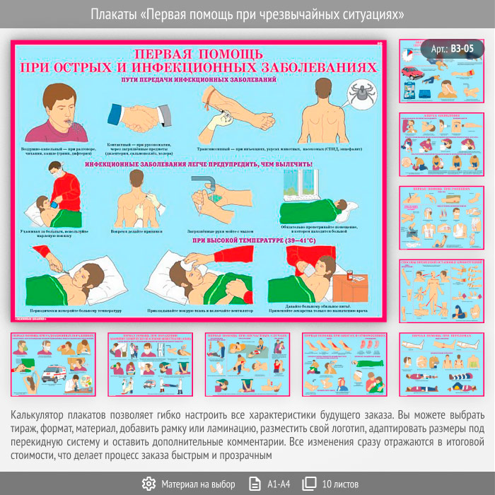 Плакаты «Первая помощь при чрезвычайных ситуациях» (ВЗ-05, 10 листов) в Новокузнецке купить