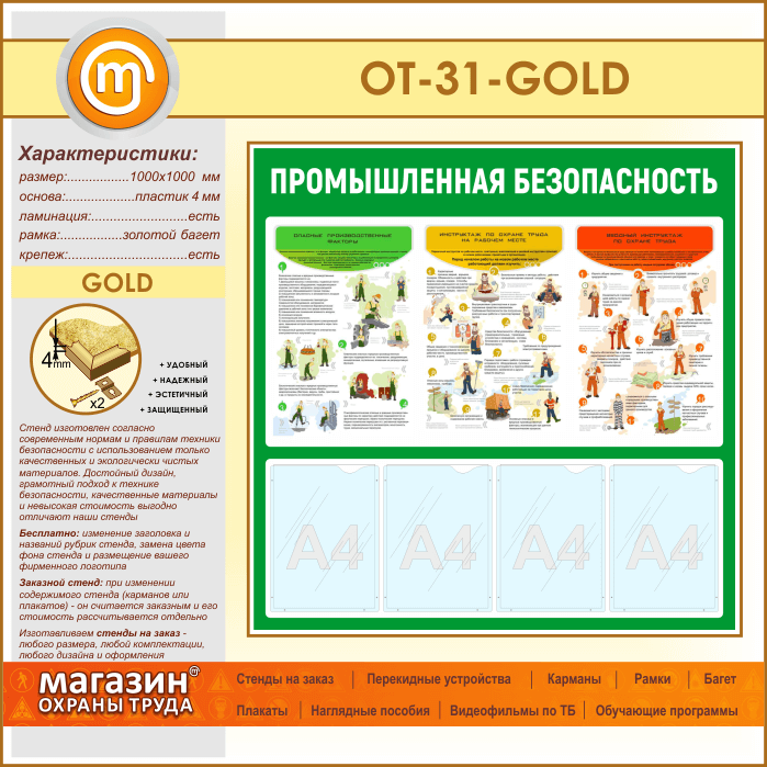 Стенд «Промышленная безопасность» с 4 карманами (OT-31-GOLD) в Новокузнецке купить