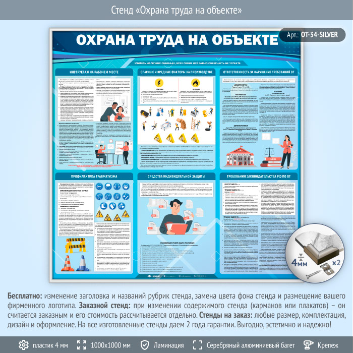 Стенд «Охрана труда на объекте» (OT-34-SILVER) в Новокузнецке купить
