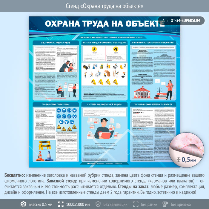 Стенд «Охрана труда на объекте» (OT-34-SUPERSLIM) в Новокузнецке купить