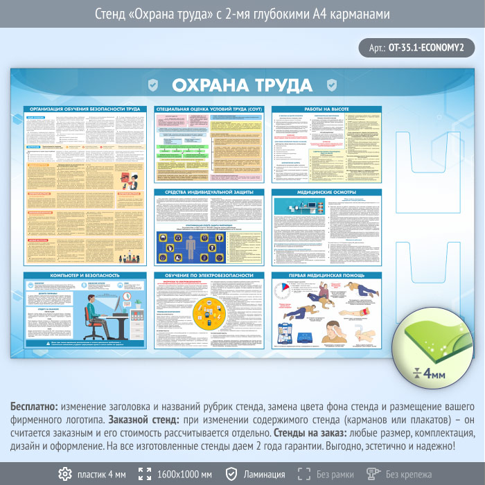 Стенд «Охрана труда» с 2-мя глубокими А4 карманами (OT-35.1-ECONOMY2) в Новокузнецке купить