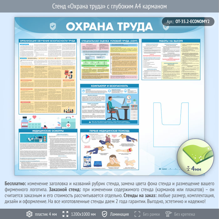 Стенд «Охрана труда» с глубоким А4 карманом (OT-35.2-ECONOMY2) в Новокузнецке купить
