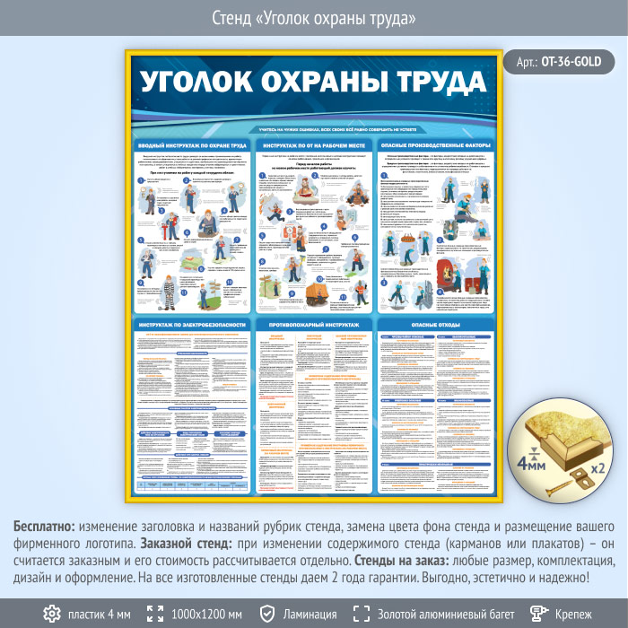 Стенд «Уголок охраны труда» (OT-36-GOLD) в Новокузнецке купить