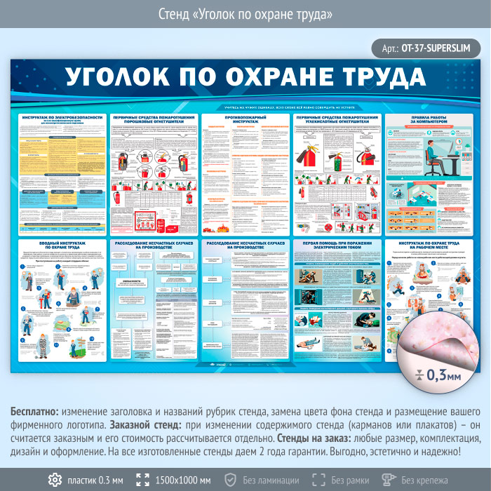 Стенд «Уголок по охране труда» (OT-37-SUPERSLIM) в Новокузнецке купить