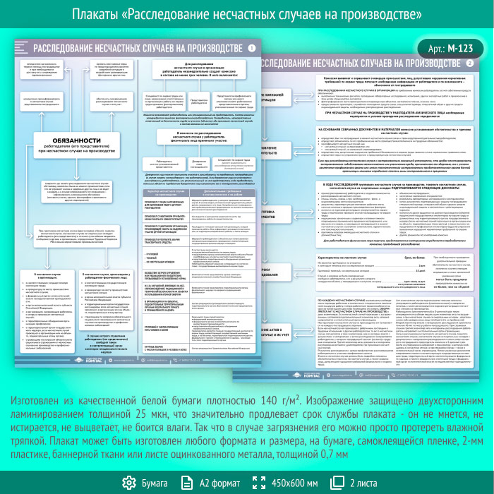 Плакаты «Расследование несчастных случаев на производстве» (М-123, ламинированная бумага, А2, 2 листа) в Новокузнецке купить