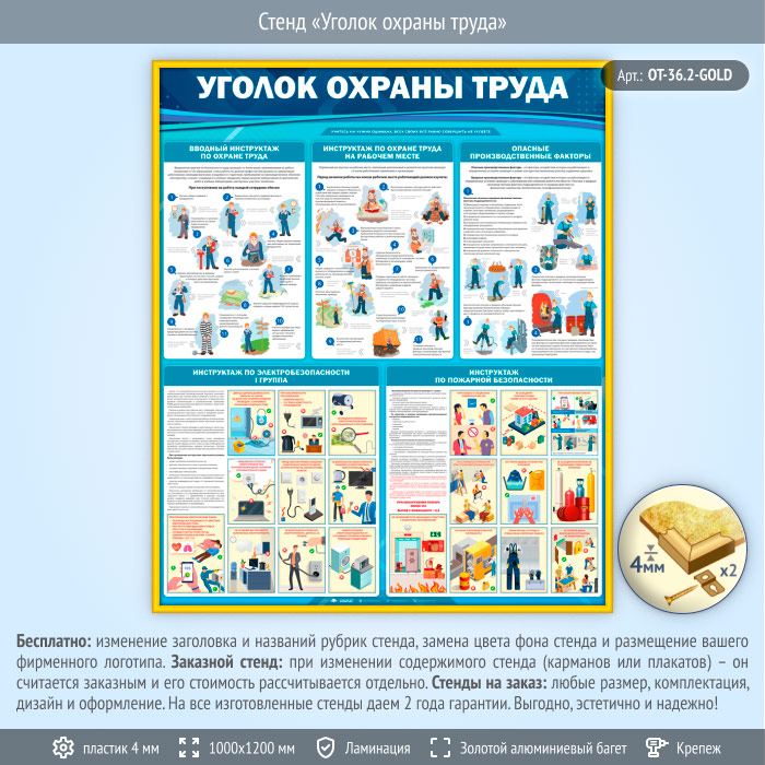 Стенд «Уголок охраны труда» (OT-36.2-GOLD) в Новокузнецке купить