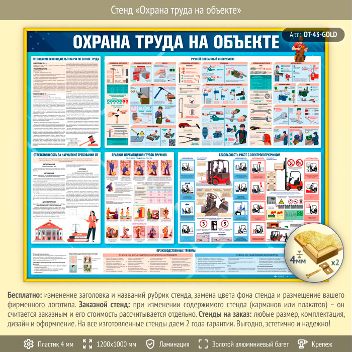 Стенд «Охрана труда на объекте» (OT-43-GOLD) в Новокузнецке купить