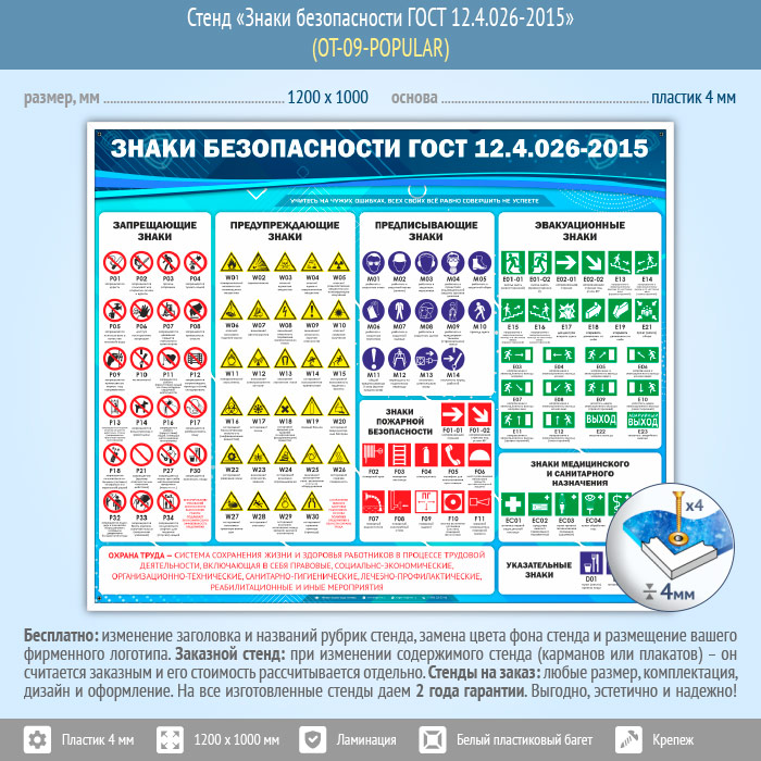 Стенд «Знаки безопасности ГОСТ 12.4.026-2015» (OT-09-POPULAR) в Новокузнецке купить