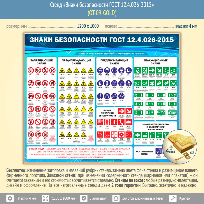 Стенд «Знаки безопасности ГОСТ 12.4.026-2015» (OT-09-GOLD) в Новокузнецке купить
