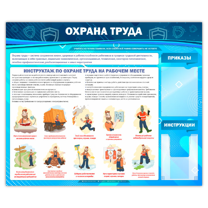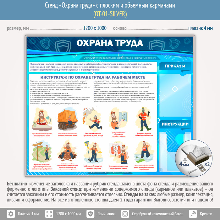 Стенд «Охрана труда» с плоским и объемным карманами (OT-01-SILVER) в Новокузнецке купить