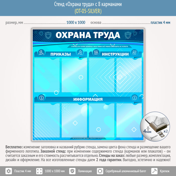 Стенд «Охрана труда» с 8 карманами (OT-05-SILVER) в Новокузнецке купить