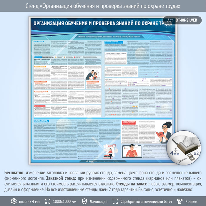 Стенд «Организация обучения и проверка знаний по охране труда» (OT-08-SILVER) в Новокузнецке купить