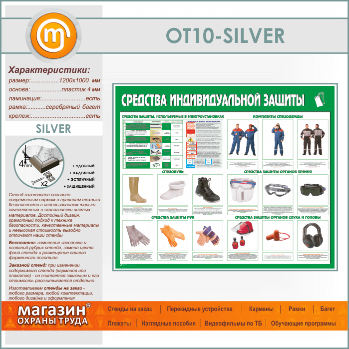 Стенд «Средства индивидуальной защиты» (OT-10-SILVER) в Новокузнецке купить