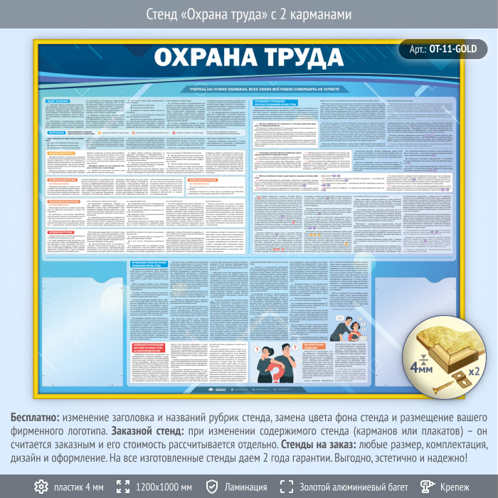 Стенд «Охрана труда» с 2 карманами (OT-11-GOLD) в Новокузнецке купить