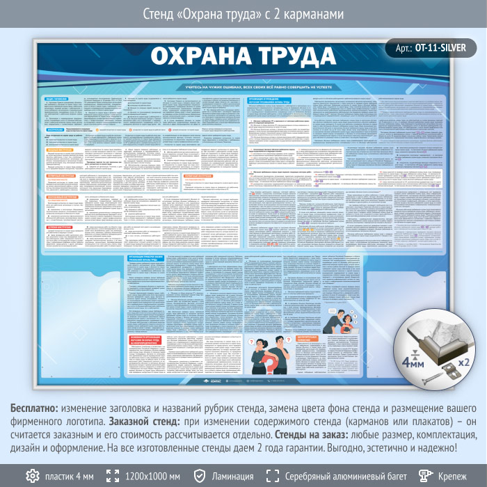 Стенд «Охрана труда» с 2 карманами (OT-11-SILVER) в Новокузнецке купить