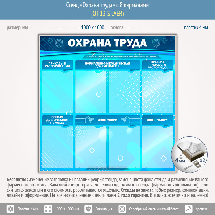 Стенд «Охрана труда» с 8 карманами (OT-13-SILVER) в Новокузнецке купить