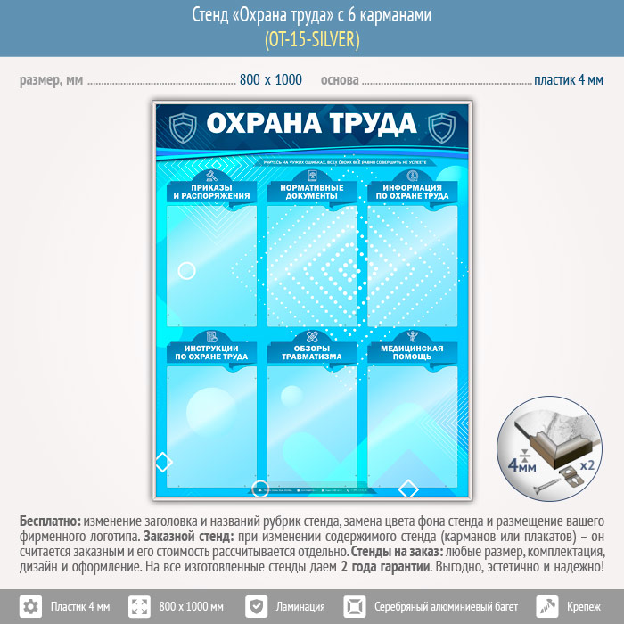 Стенд «Охрана труда» с 6 карманами (OT-15-SILVER) в Новокузнецке купить
