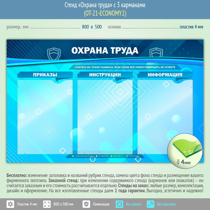 Стенд «Охрана труда» с 3 карманами (OT-21-ECONOMY2) в Новокузнецке купить