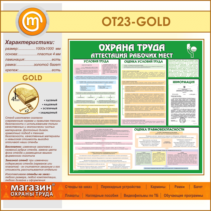 Стенд «Охрана труда. Аттестация рабочих мест» с карманом (OT-23-GOLD) в Новокузнецке купить