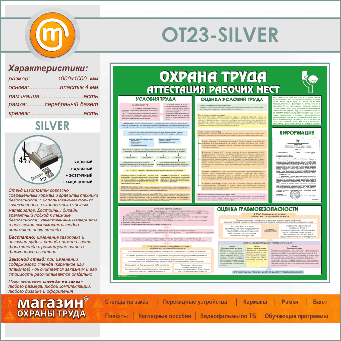 Стенд «Охрана труда. Аттестация рабочих мест» с карманом (OT-23-SILVER) в Новокузнецке купить