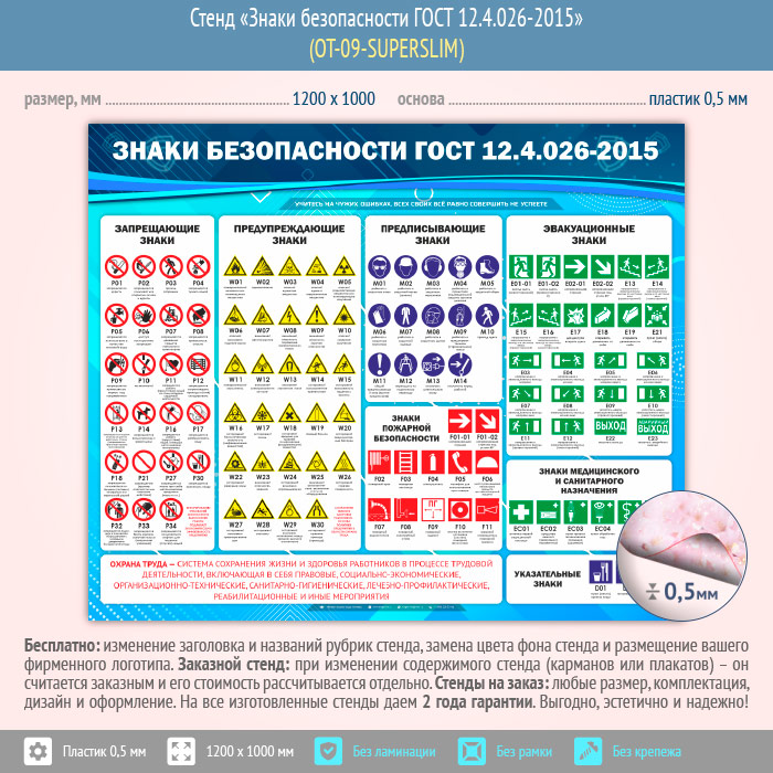 Стенд «Знаки безопасности ГОСТ 12.4.026-2015» (OT-09-SUPERSLIM) в Новокузнецке купить