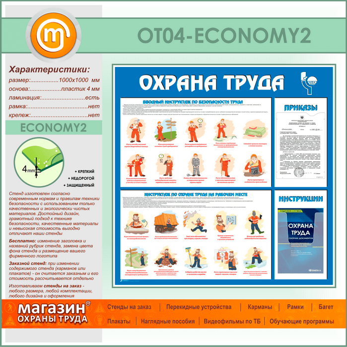Стенд «Охрана труда» с плоским и объемным карманами (OT-04-ECONOMY2) в Новокузнецке купить