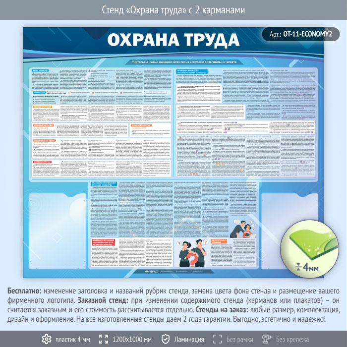 Стенд «Охрана труда» с 2 карманами (OT-11-ECONOMY2) в Новокузнецке купить