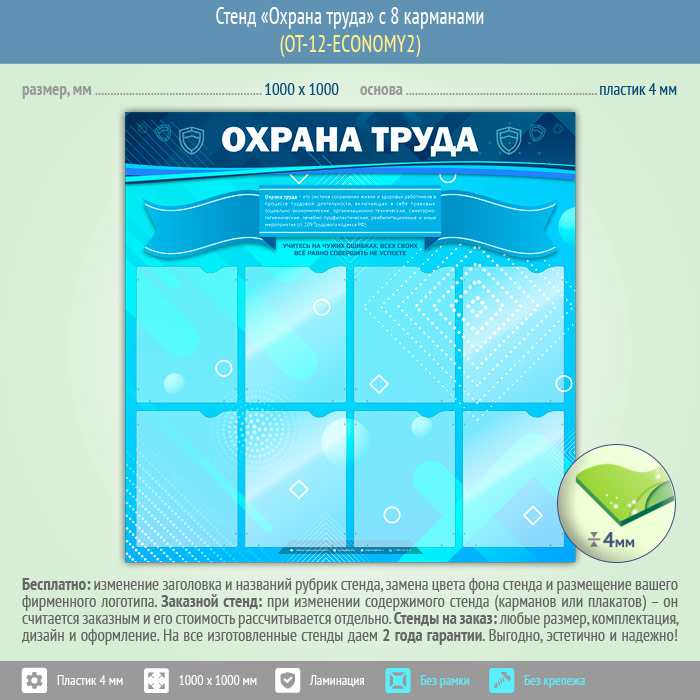 Стенд «Охрана труда» с 8 карманами (OT-12-ECONOMY2) в Новокузнецке купить