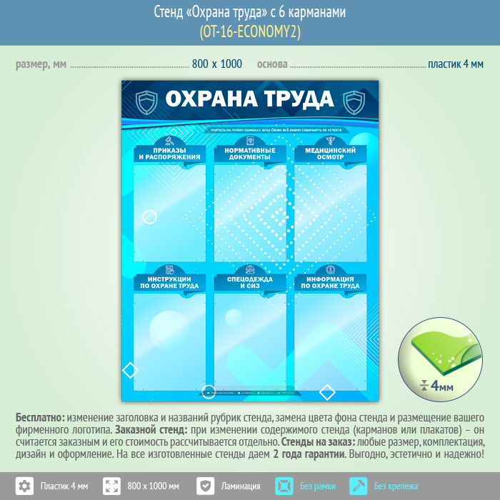 Стенд «Охрана труда» с 6 карманами (OT-16-ECONOMY2) в Новокузнецке купить