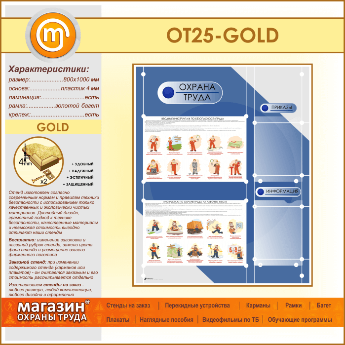 Стенд «Охрана труда» с 2 плоскими карманами (OT-25-GOLD) в Новокузнецке купить