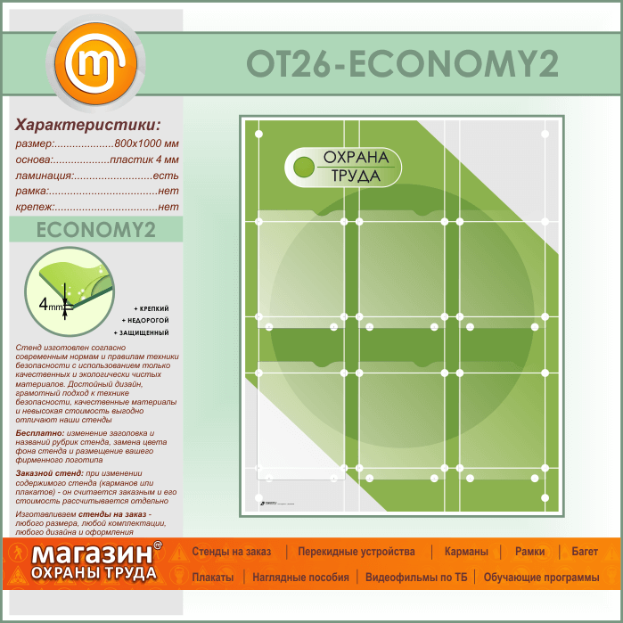 Стенд «Охрана труда» с 6 плоскими карманами (OT-26-ECONOMY2) в Новокузнецке купить