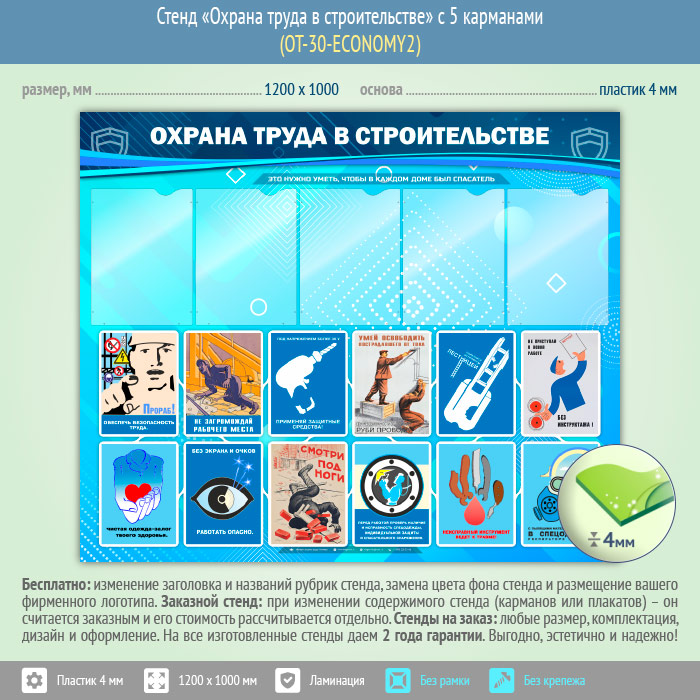 Стенд «Охрана труда в строительстве» с 5 карманами (OT-30-ECONOMY2) в Новокузнецке купить