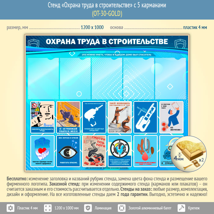 Стенд «Охрана труда в строительстве» с 5 карманами (OT-30-GOLD) в Новокузнецке купить