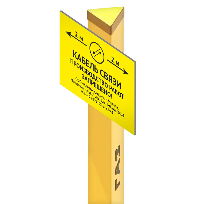 Столбик треугольный желтый h=1800 мм (сторона 130 мм) в Новокузнецке купить