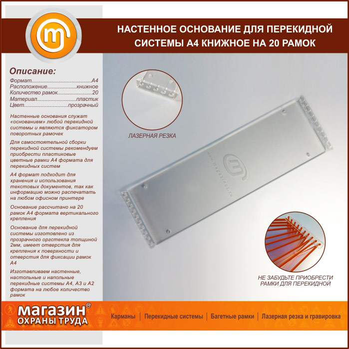 Настенное основание для перекидной системы А4 книжное на 20 рамок (оргстекло) в Новокузнецке купить