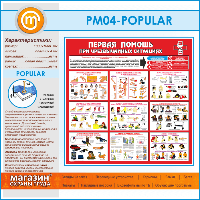 Стенд «Первая помощь при чрезвычайных ситуациях» (PM-04-POPULAR) в Новокузнецке купить