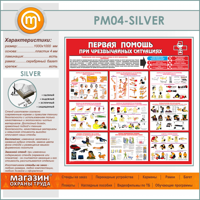 Стенд «Первая помощь при чрезвычайных ситуациях» (PM-04-SILVER) в Новокузнецке купить